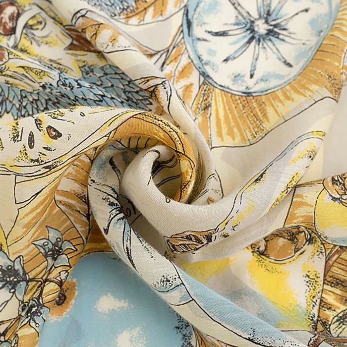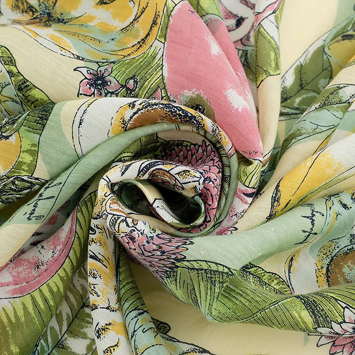 manipuri マニプリ コットンシルク ストール COLLAGE JUNGLE FRUITS 120×120 レディース 0151333014レディース 正規品 おしゃれ エレガント 人気 ブランド 通勤 オフィス ギフト対応 日本製 スタイリッシュ 春 夏 秋 冬