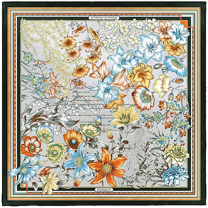 manipuri マニプリ シルクスカーフ ストール SPRING SPRING 65×65 レディース 0151330008 レディース 正規品 おしゃれ エレガント 人気 ブランド 通勤 オフィス ギフト対応 日本製 スタイリッシュ 春 夏 秋 冬