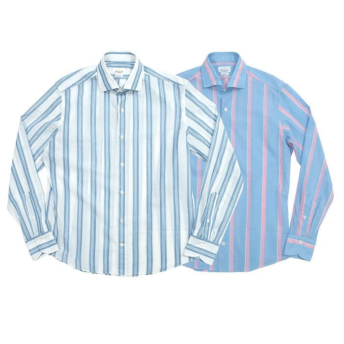 Giannetto ジャンネット ワイドカラーコットンストライプシャツ VINCI FIT メンズ 春夏 4103-213630V81
