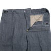 1プリーツにバックシャーリング、ボタンアジャスターの為、ベルトレスでも快適に履け、