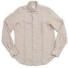 ナチュラルな風合いが特徴で、アームホール、ボタン、ガゼット部分は熟練した職人の手によるハンドメイド。ハンドメイドならではの柔らかな風合いとストレッチのような着心地が、90年以上の歴史を誇る老舗シャツメーカーフィナモレの大きな特徴です。