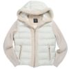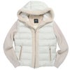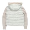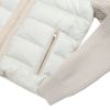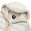 フード周りとフロント部分に配されたムートン、身頃に配された抜群の軽さと暖かさをもつダウン、スポーティーな存在感をはなつニットを袖に使う