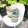 鮮やかなマルチカラーのボーダーが目を引くアバカ製カゴバッグのSサイズ。