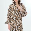 商品説明 全面にあしらわれた幾何学柄がオリジナリティ溢れるシャツ。