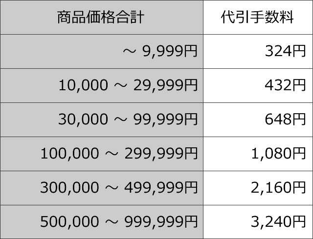 ※代金引換手数料は代金引換手数料一覧表がございますので併せてご確認をお願い致します。